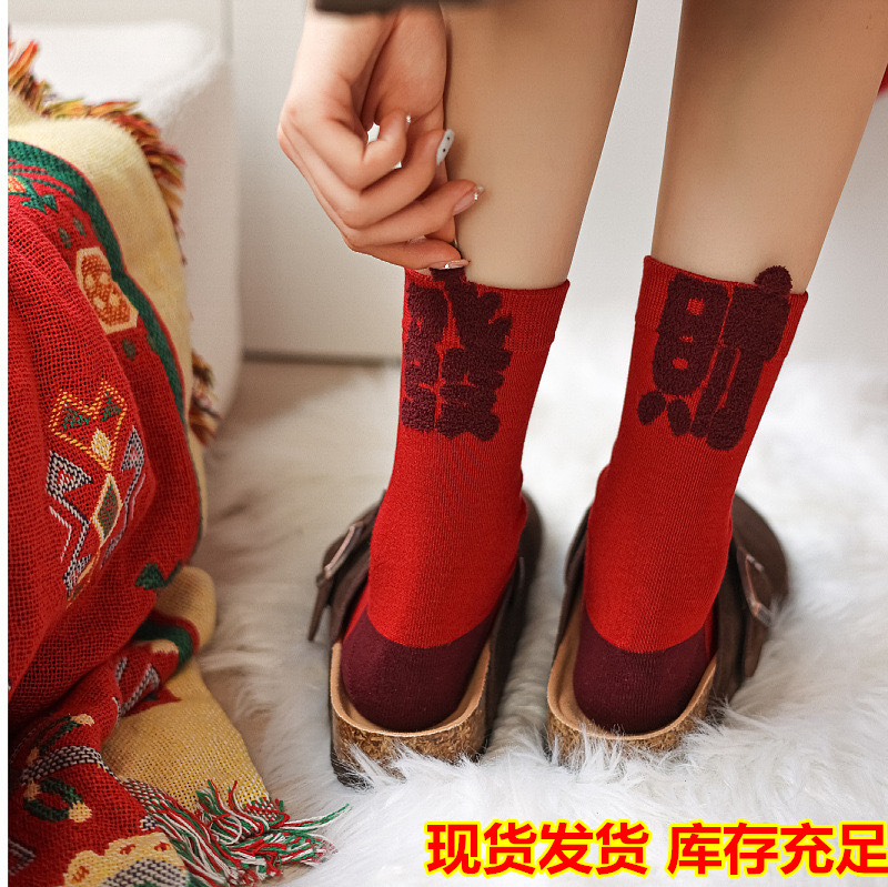 2025本命年男女紅靴下中筒靴下秋冬足七星連珠蛇年カップル合足ストッキング