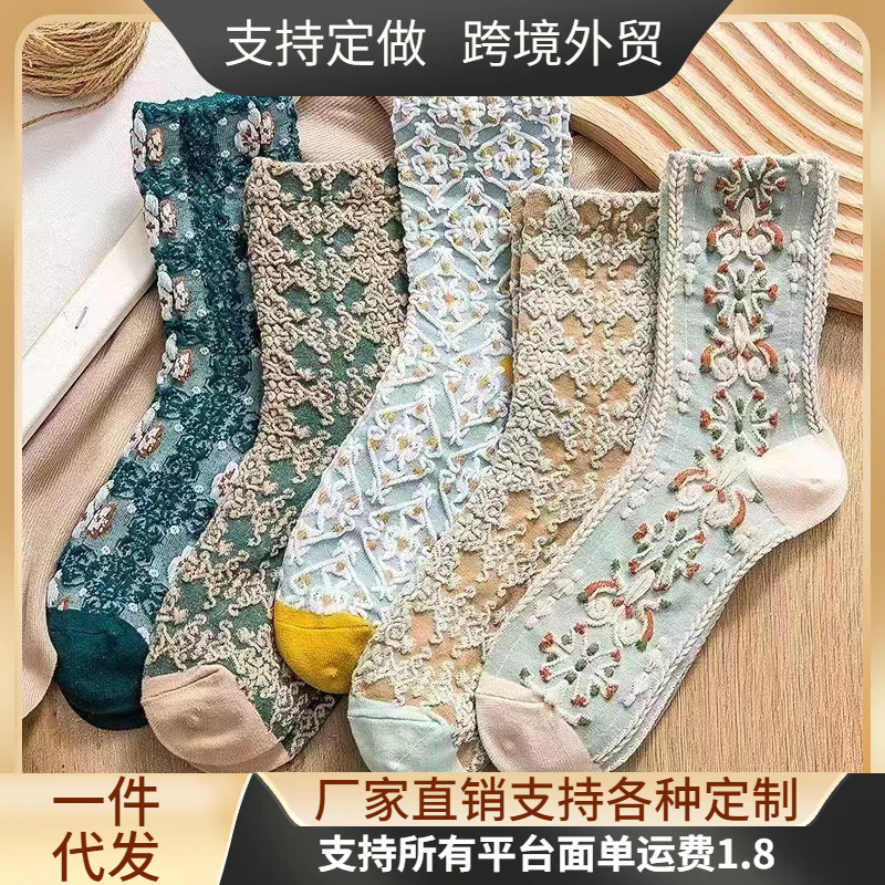 宮殿風ソックスレディースミッドカーフソックスネット有名人イントレンド綿ソックス日本韓国版秋冬安いハイカットストッキング女性用