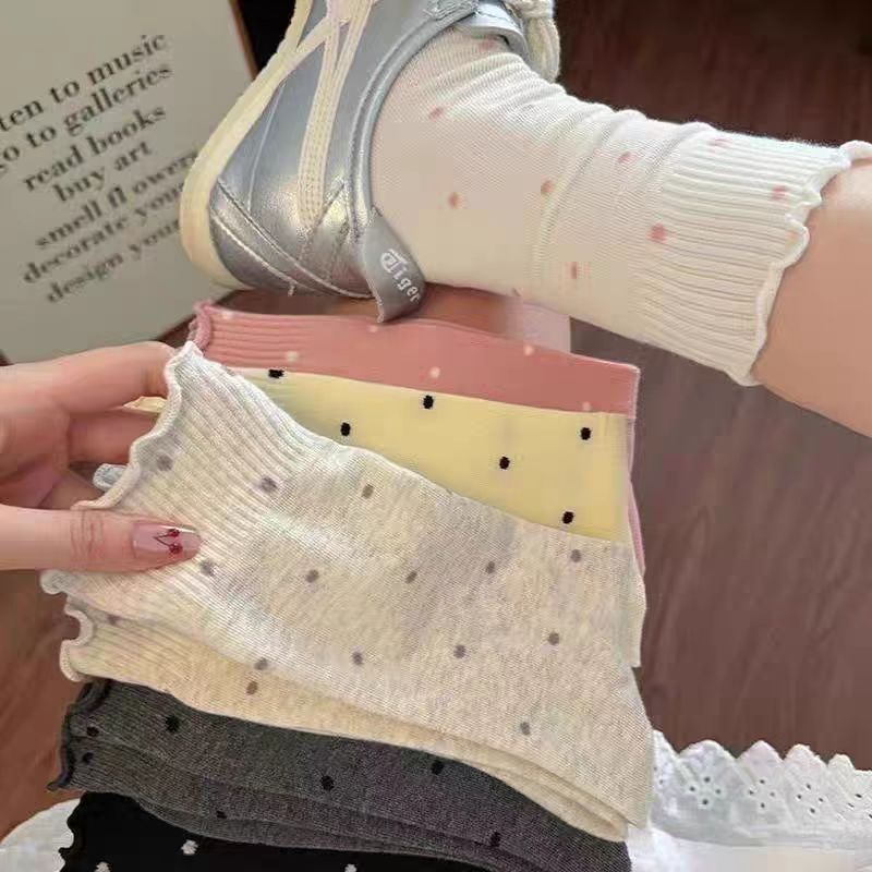 24秋新作カールエッジ水玉ミッドカーフソックス日本新作ソックスミッドカーフレースコットンソックス諸吉靴下