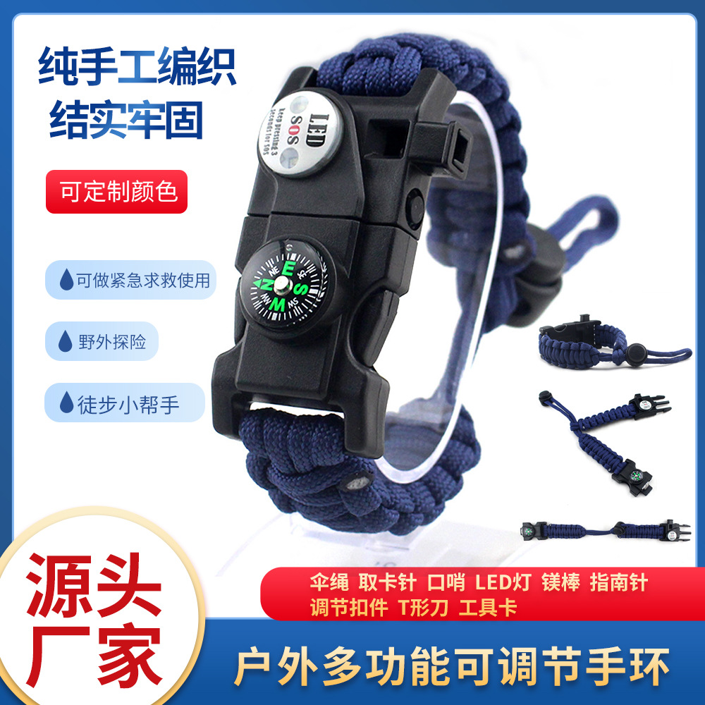 アウトドア用手編みパラコード多機能サバイバルブレスレット 野外サバイバル用火打ち石・コンパス付きパラコードブレスレット
