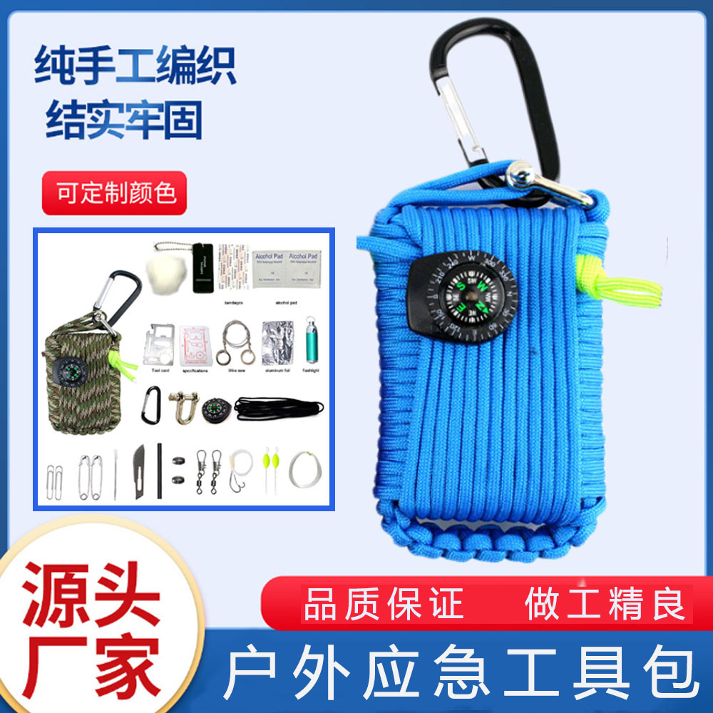 多機能屋外傘紐編み緊急生存ツールケース救命救急バッグ登山ボタン打火石鋸セット