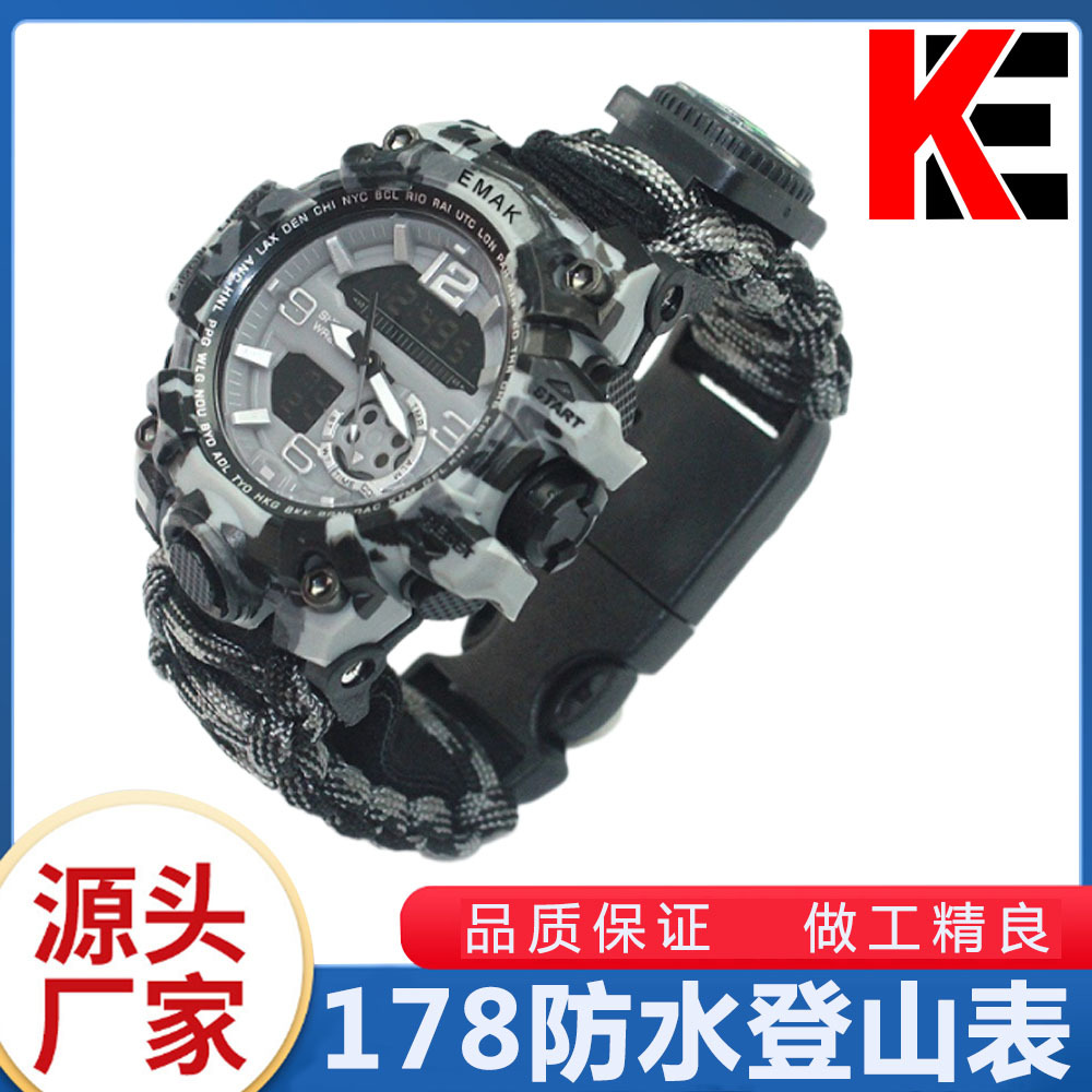易麦アウトドアスポーツ防水腕時計キャンプ探検傘紐編みダブルコア迷彩多機能腕時計