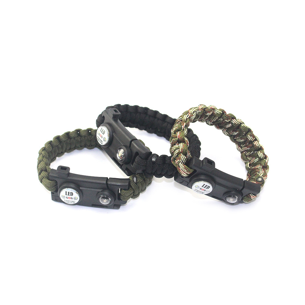 キャンプ旅行七合一多機能sos傘縄ブレスレットレーザー赤外線生存手環現物卸売り