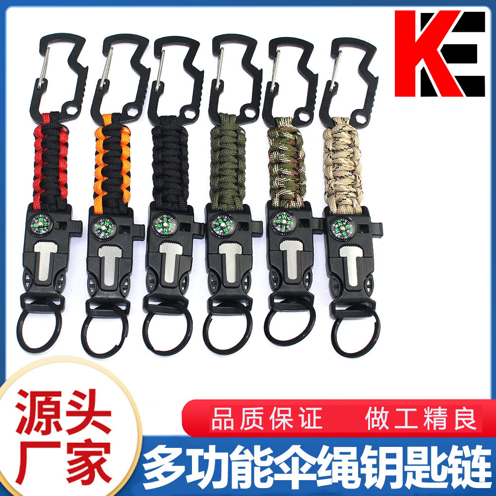 アウトドア多機能キーチェーンコンパスは火石七芯傘紐編みリュックサックを掛けます。