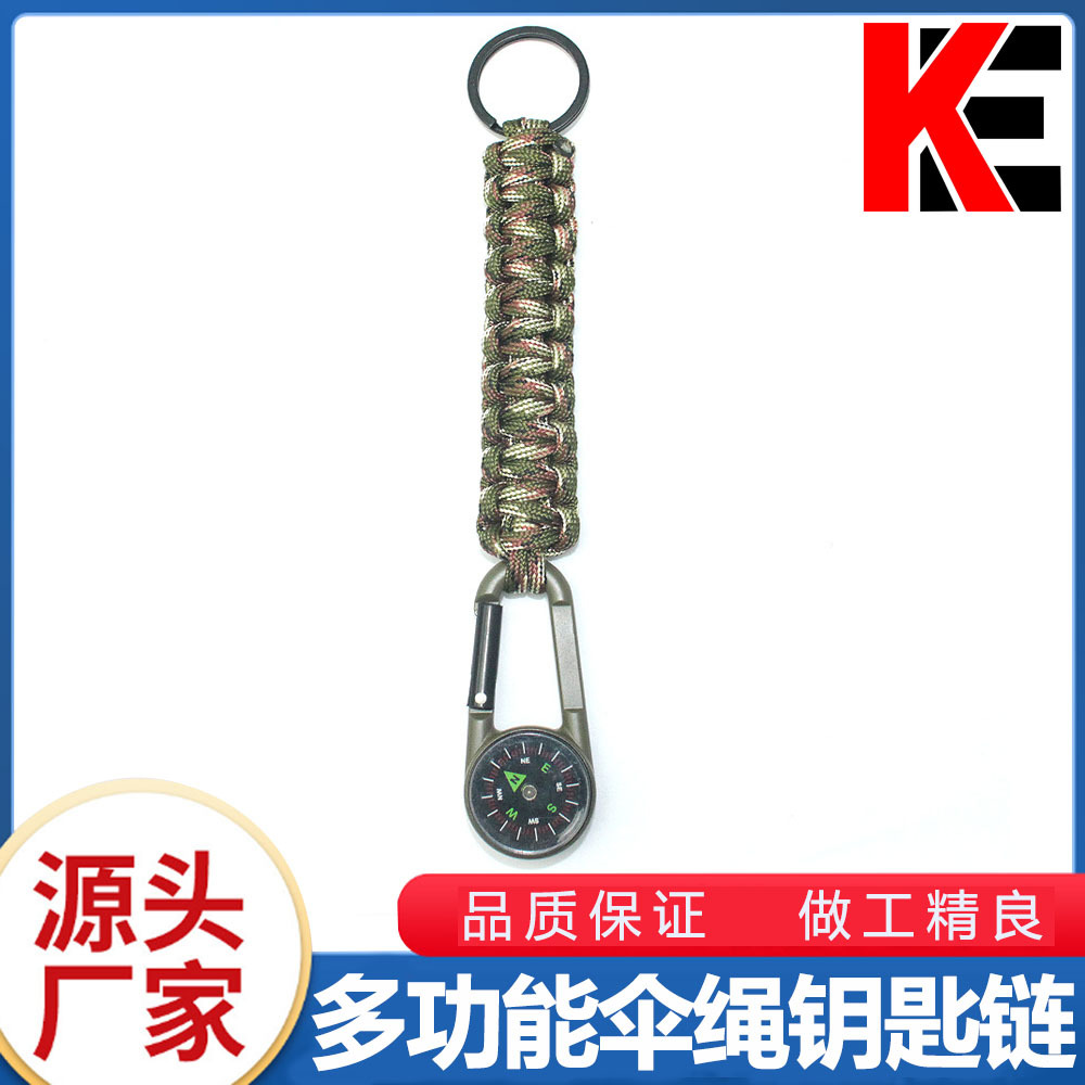 屋外キャンプ生存多機能両面温度計コンパス登山ボタン七芯傘紐編みキーホルダー