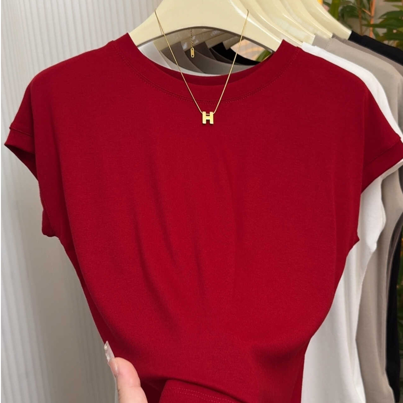 Xiaofeixiu 夏アウターニッチ半袖トップスタイル Tシャツ無地ルーズデザインラウンドネック新しい女性の弾性