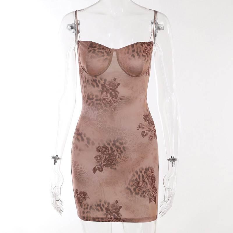 セクシーなヒップカバーショートスカート、女性のヨーロッパとアメリカの夏のハイエンドサスペンダーメッシュドレスホットガールプリントスタイルスリムホットガール