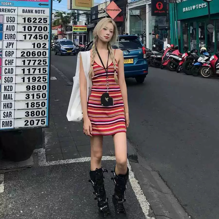 万能スカート新スタイル 2025 ストリートスリムセクシーな痩身ストライプ気質韓国スタイルサスペンダードレス女性の夏