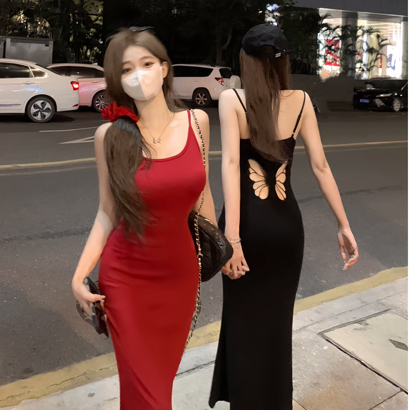ホットガールピュアディザイア2025バタフライスリムサスペンダードレススリムフィット中空デザインデザインスカートセクシーバック