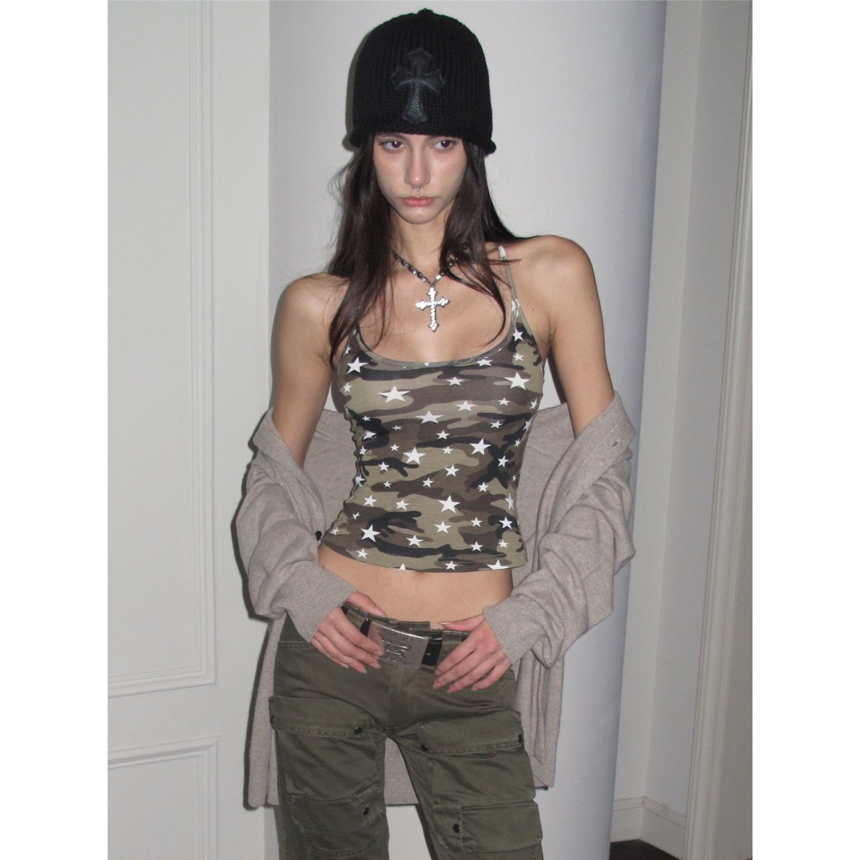 新しいスタイルのキャミソール女性のショートセクシーな夏 2025 五芒星ヨーロッパとアメリカの ins ホットガール迷彩スリムトップ