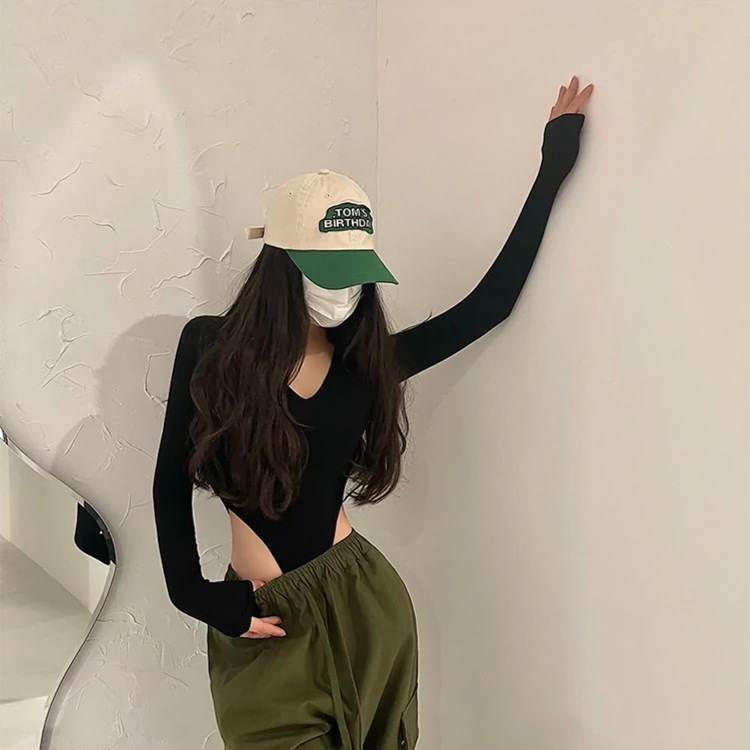 ヨーロッパとアメリカンスタイルのボトリングシャツジャンプスーツ長袖TシャツセクシーなVネックインナーネットセレブトップススリムフィットジャンプスーツホットガールニッチ