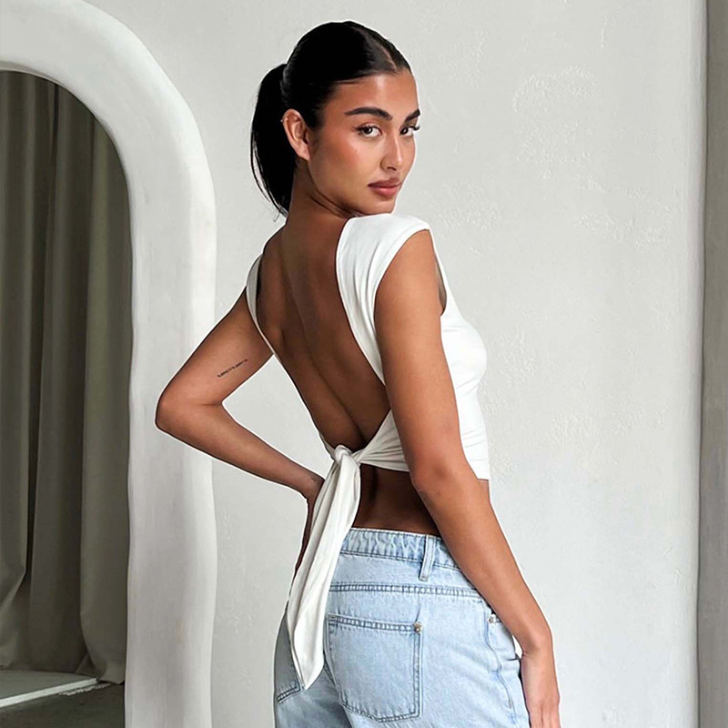 シンプルなヨガビューティーカバーアップ、無地、露出背中、女性ネットセレブストリートボディ、セクシーなルーズベスト、微透けホットガール