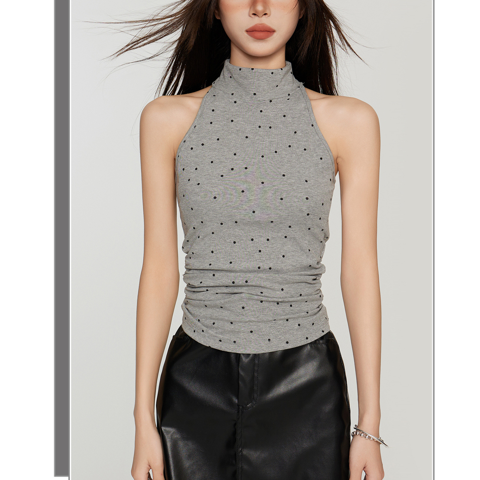 ハーフタートルネックニッチスリムフィットトップシーズンセクシーなアウターウェア純粋な欲望水玉模様のホットガールノースリーブベスト女性夏