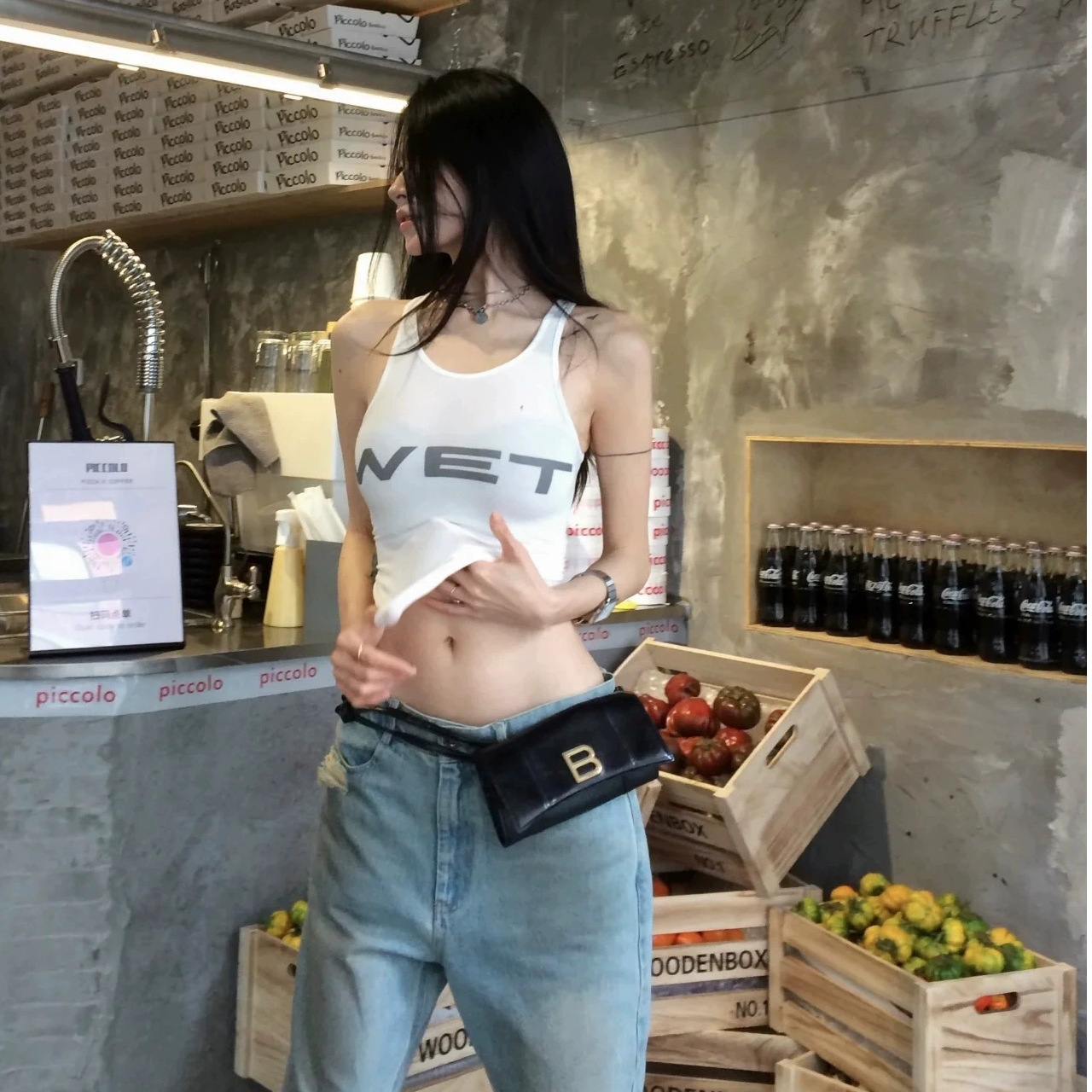 女性用の背中の開いたベスト、トレンディなデザイン、スリムフィットのショートトップ、中空のエレガントな夏のホットガールスタイル、甘いインナーウェア、ニッチ