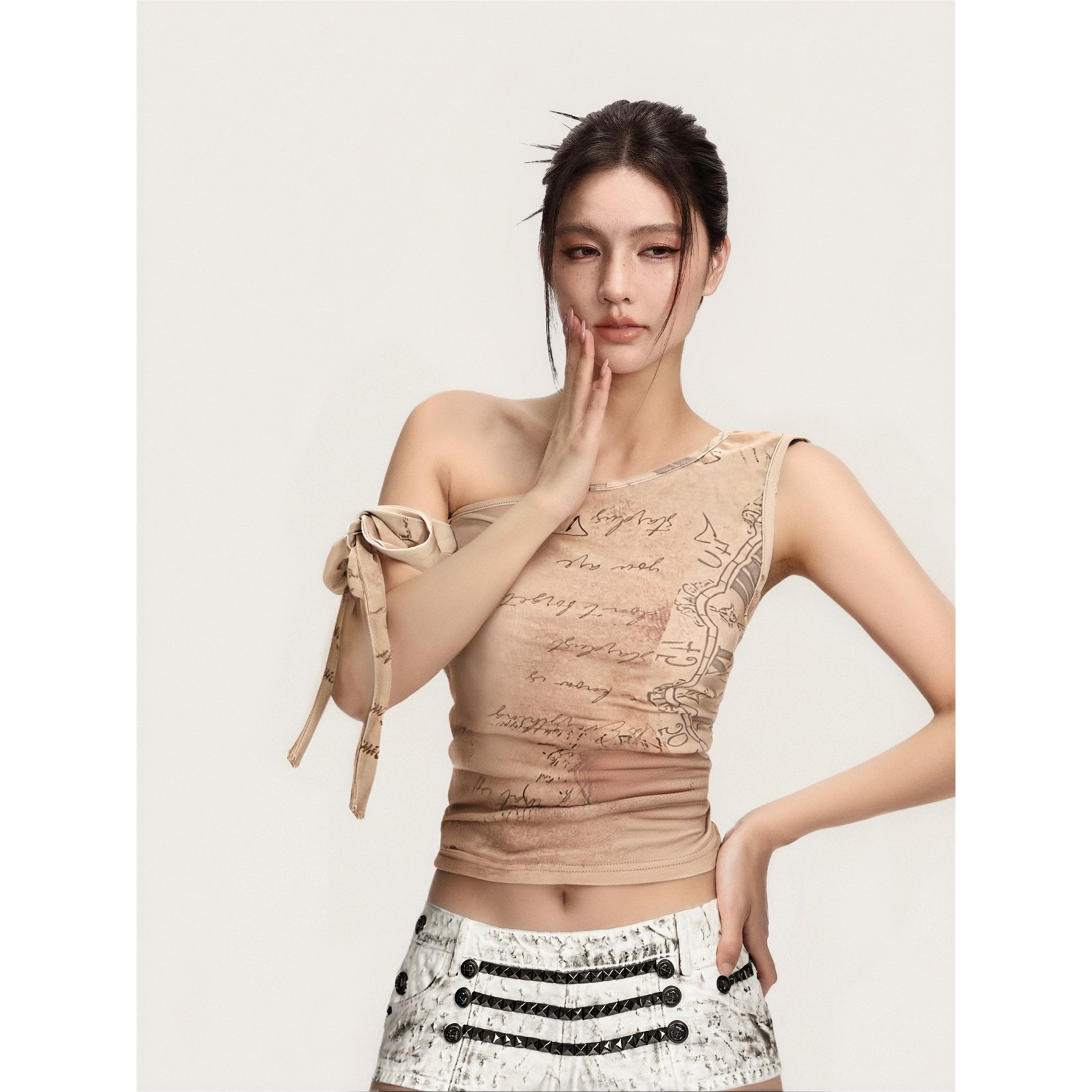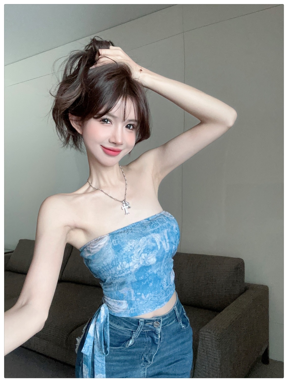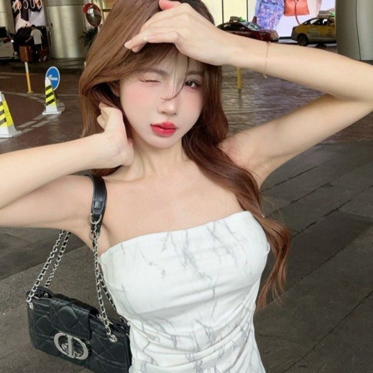 春夏新作胸巻きスリムレディーススリット気質ワンショルダーショートフレンチベスト痩身チューブトップ2025スモールシャツ