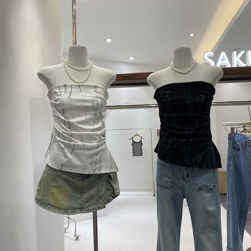 プリーツインナー2025春夏チューブトップスリムデザインセクシーショートアウターウェア新しいスタイルニッチボトミングベスト女性用