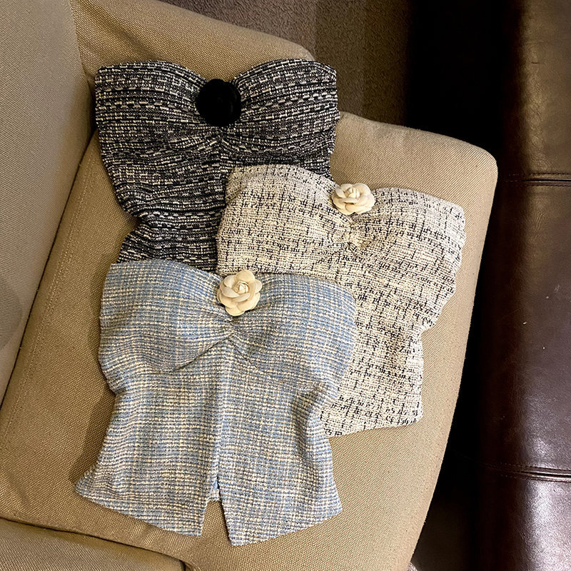 ショートベストデザイン、ピュアサマー、チューブトップ、プリーツグレートップ、ニッチインナー、セクシーで胸が見える、スリムフィット