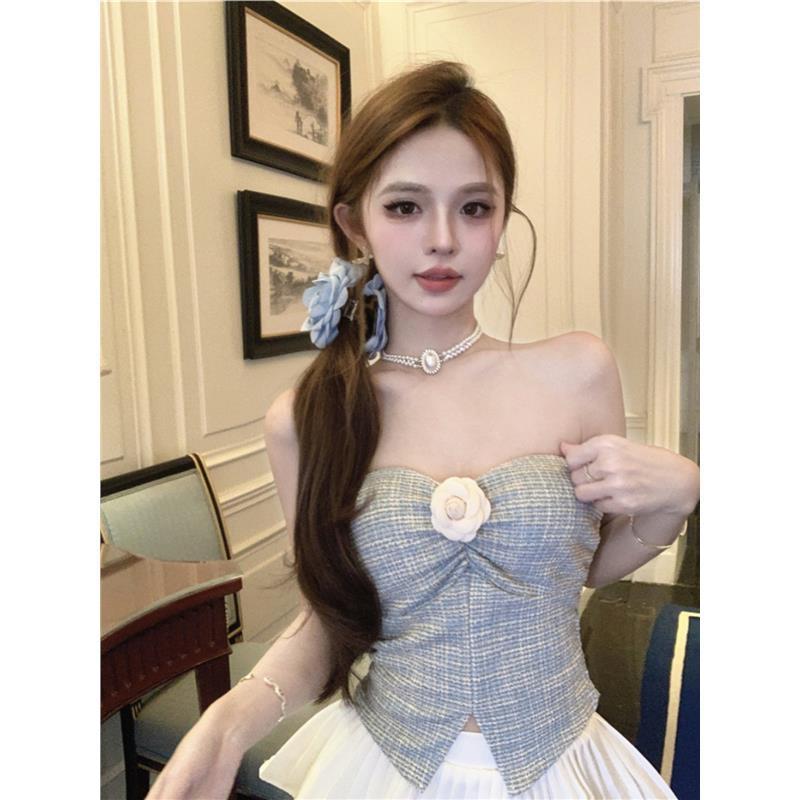 女性の椿サスペンダーチューブトップフレンチショートトレンディスリムホットガール夏ノースリーブトップ 2025 デザインニッチ