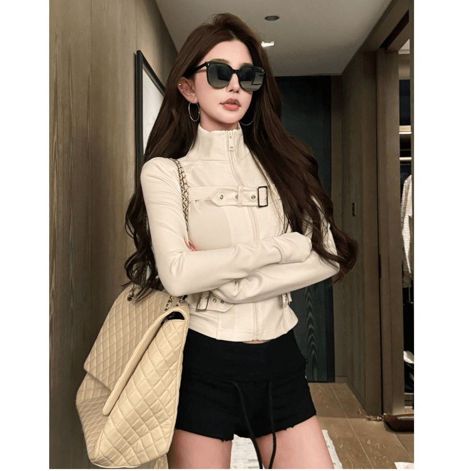 女性用の不規則なトップス、多用途の日本製春夏香港スタイルのジッパートレンドスタンドカラーデザイン韓国版2025女性用ジャケット