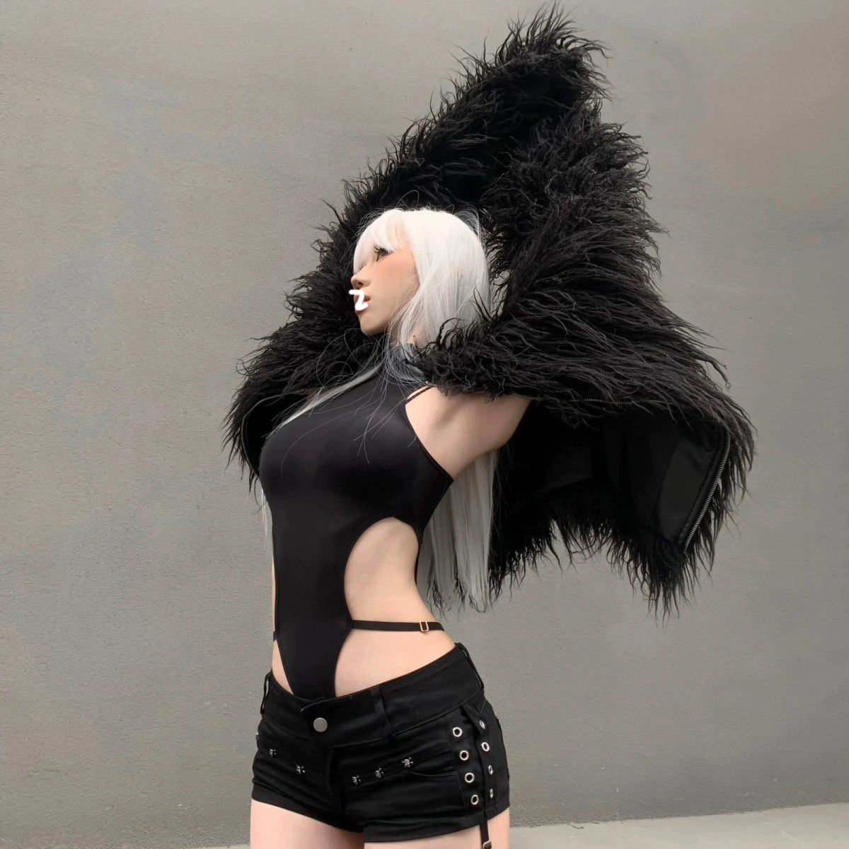 女性のホットガールアメリカン Tシャツ黒スリムレトロセクシーなバックレス春夏ボトムストップスリムボディスーツ
