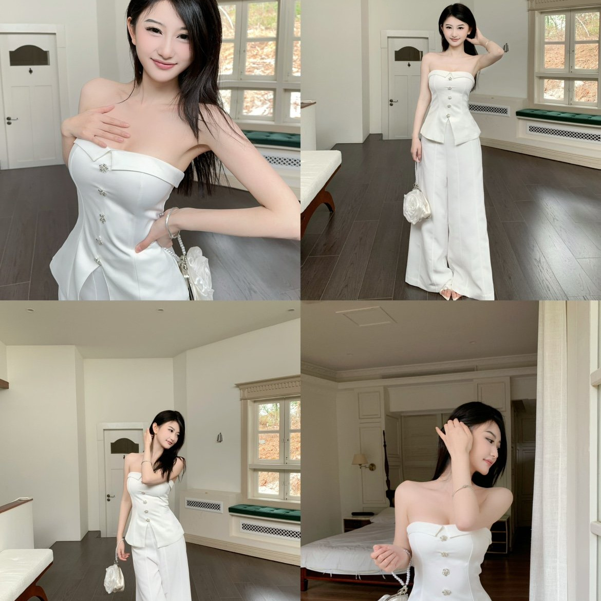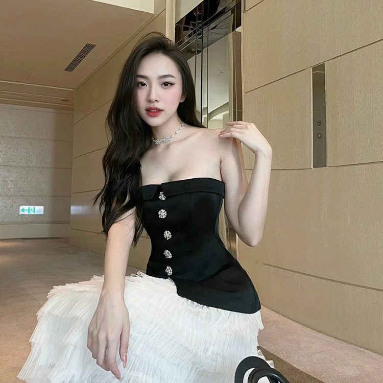 スーツの内側にスリットが入った高級春夏チューブトップ、胸元を包み込む香りの良いボトムストップス、シックな女性らしいワンショルダー