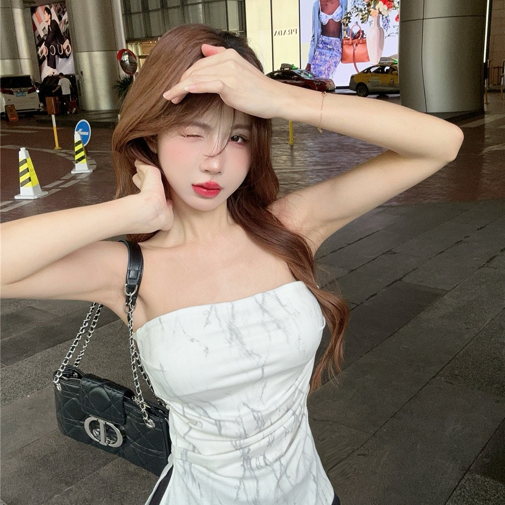 チューブトップセクシーなスリムフィット小柄な新しいスタイル2025ホットガール気質純粋な欲望スタイルの女性の夏のサテン
