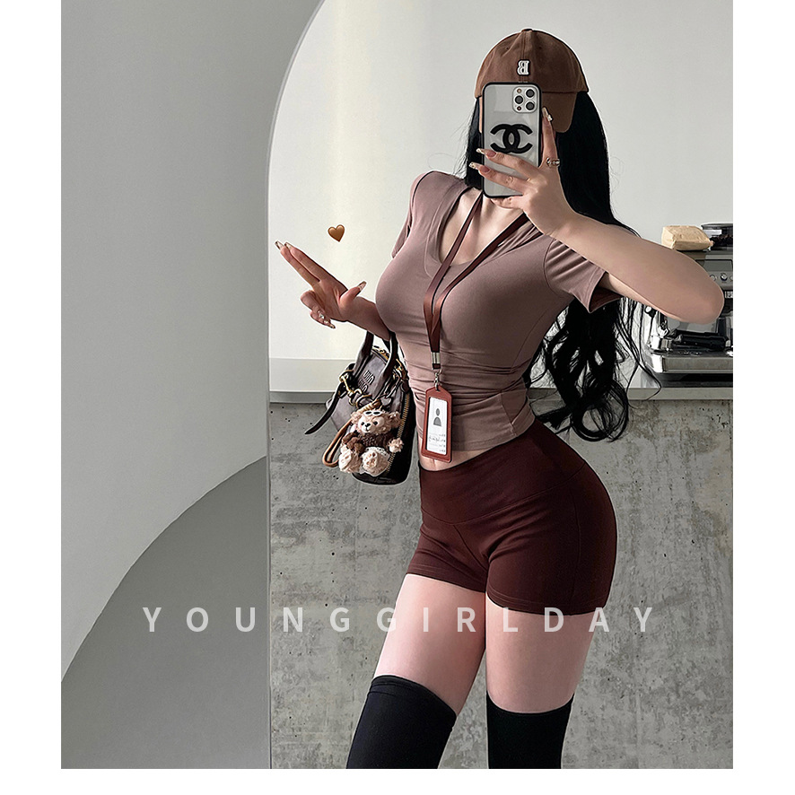 レトロストリートスポーツアメリカンスリムショーツレディースホットパンツホットガールへそ露出純粋な欲望セクシーな多用途スリムフィット