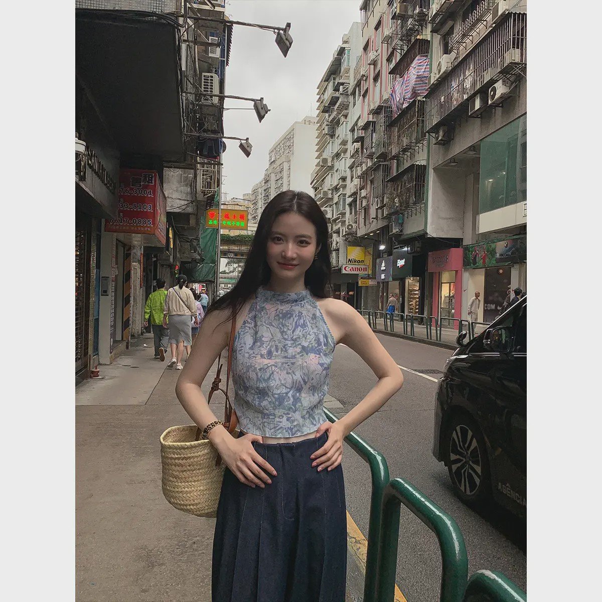 ノースリーブトップホルターネック新しいキャミソール女性のデザイン小花柄 2025 夏スリムセクシーなハイエンドフレンチスタイル