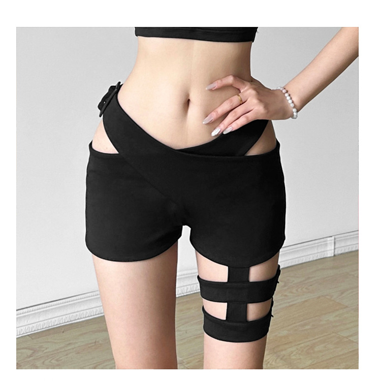 機能的な中空ローウエストディスコショーツ女性用サマースタイルダークジャズダンスパンクブラックホットパンツホットガール