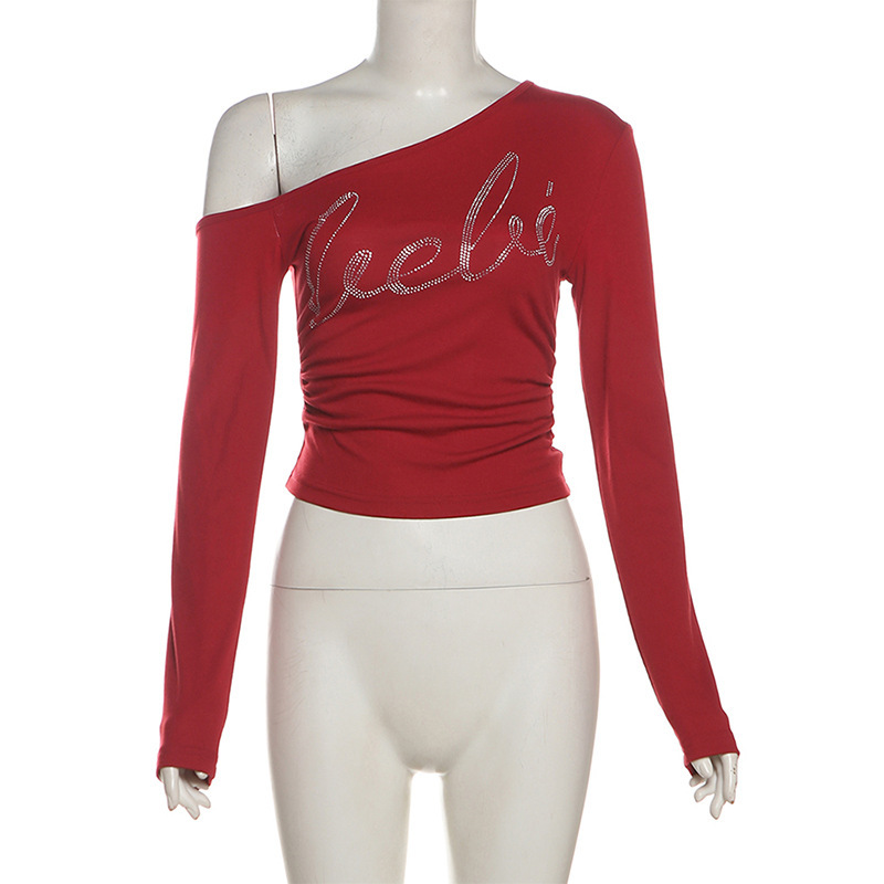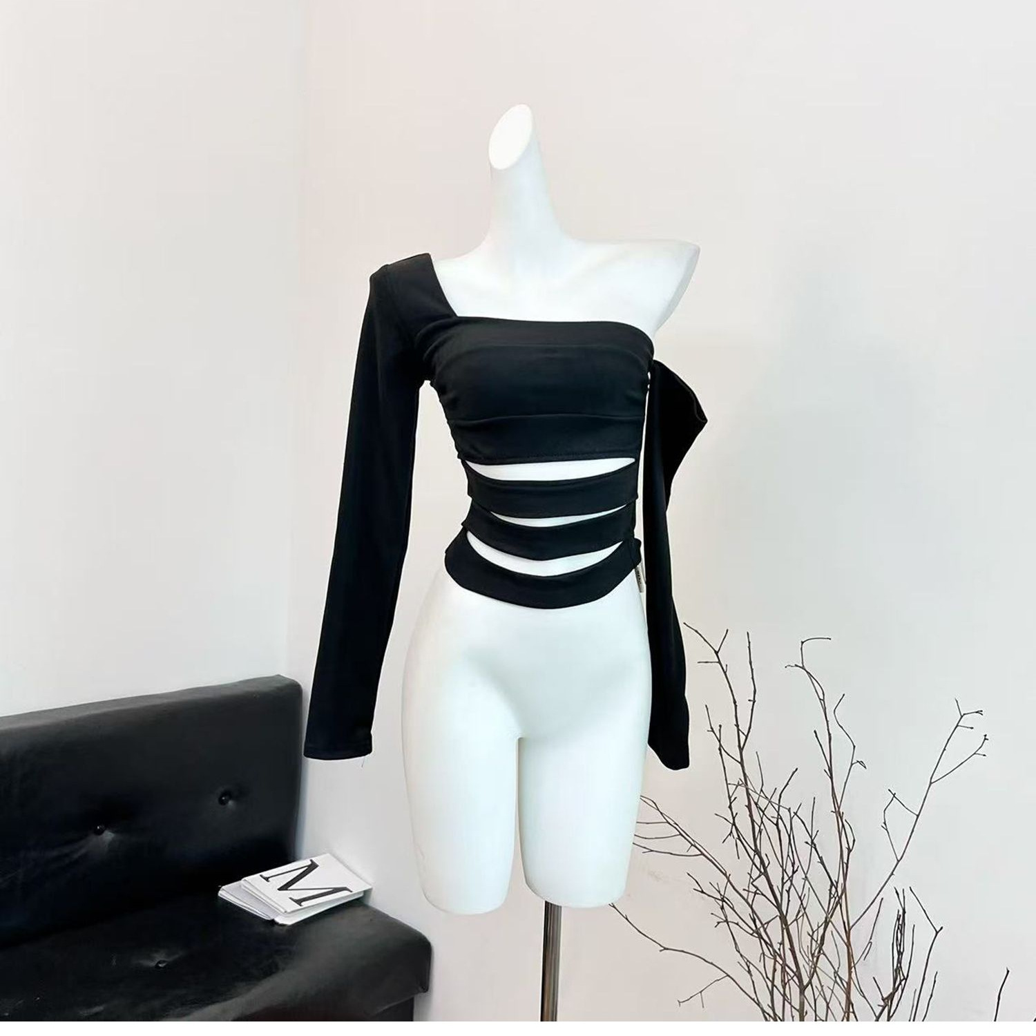 女性用長袖Tシャツ、ホットガール、スリムフィット、ワンショルダー、ニッチなインナーデザイン、シック、純粋な欲望、ショートスタイル、シック