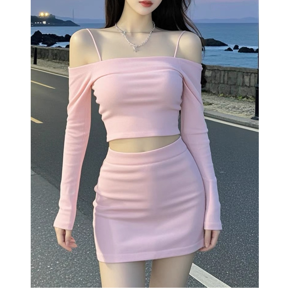 長袖女性アンカー、ストラップ付きオフショルダートップ、ローカットボディ、甘くてスパイシーな生放送、純粋な欲望のTシャツ、セクシーな気質の服