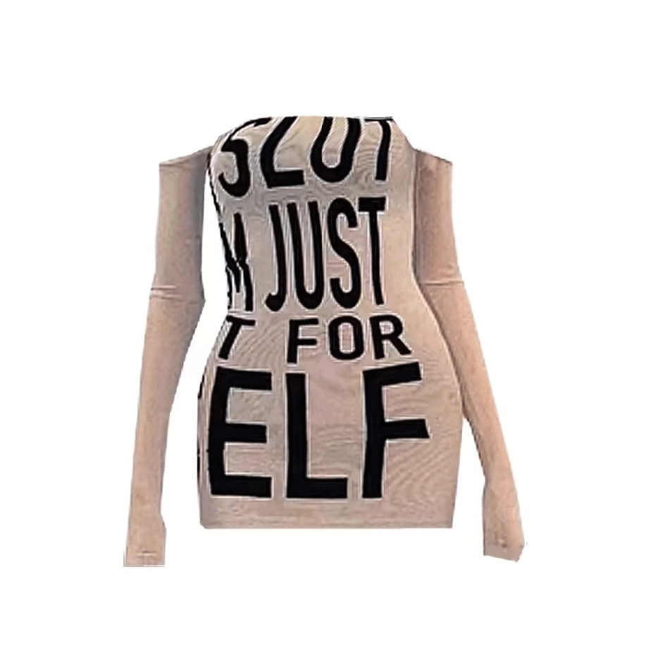 スリムワンショルダー長袖チューブトップレタースリムTシャツホットガールアメリカンピュアセックスセクシーレディースインナープリント