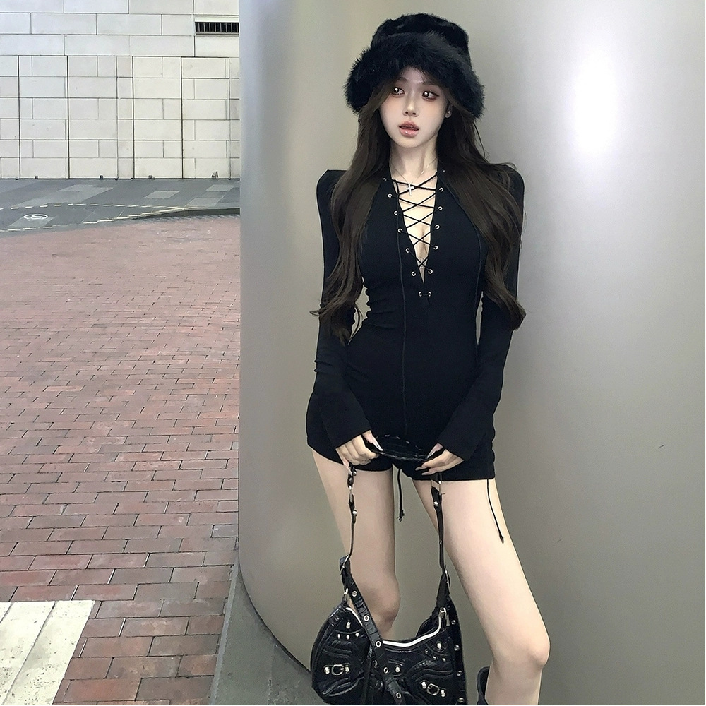 デザインジャンプスーツレディースアウターショーツホットガールボトリングトップメッシュ長袖純粋な欲望スタイル2024セクシーブーツパンツ