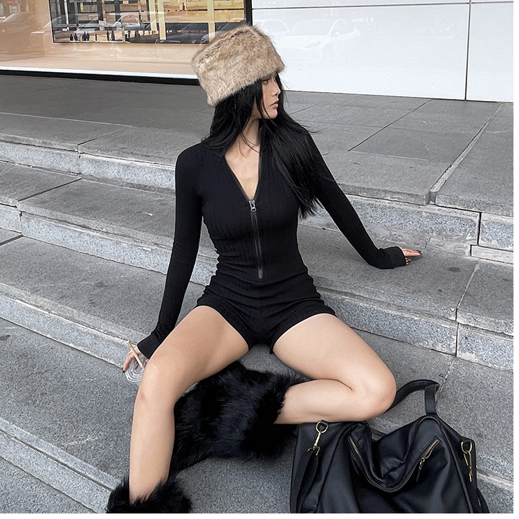デザインスリムでセクシーなヨーロッパとアメリカの女性用長袖トップス、ホットガールスタイルのジッパー付き新しいジャンプスーツ、ニッチな夏と秋