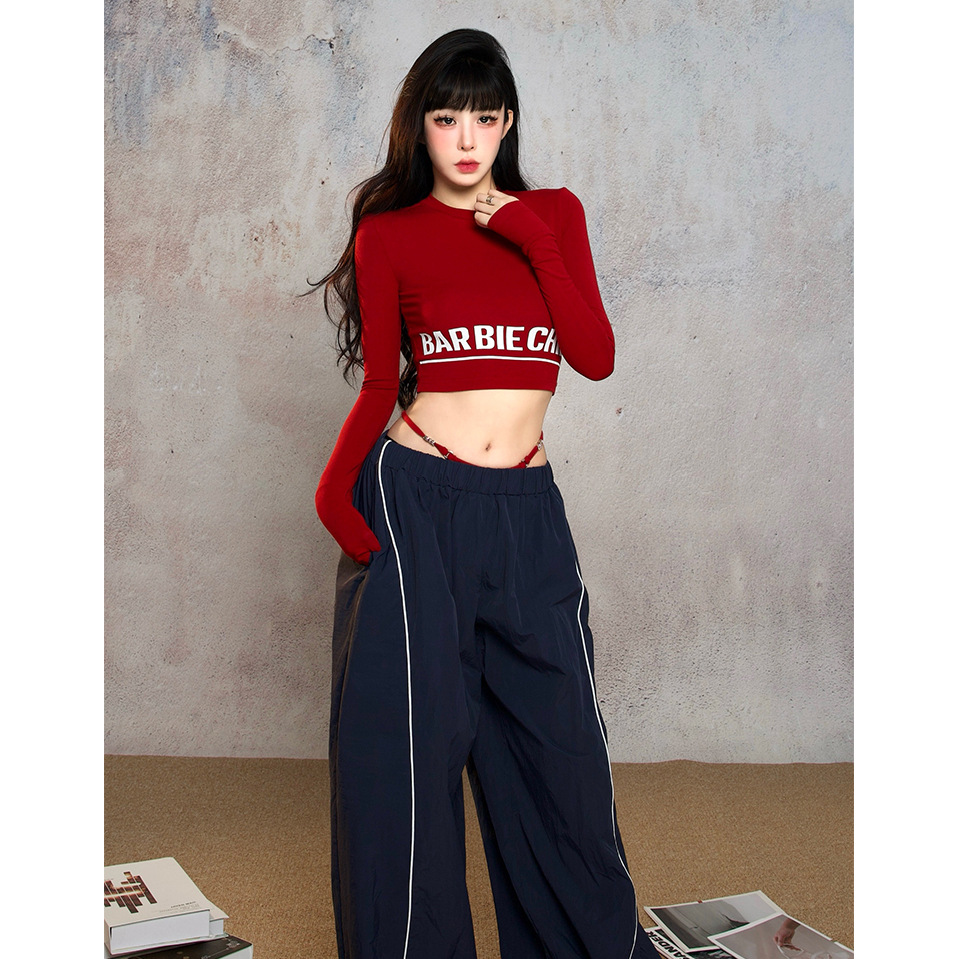 スリムホットガールトップスプリントレターボトリングシャツスタイルスリム長袖Tシャツレディースアメリカンダンスストリート秋ストレッチ