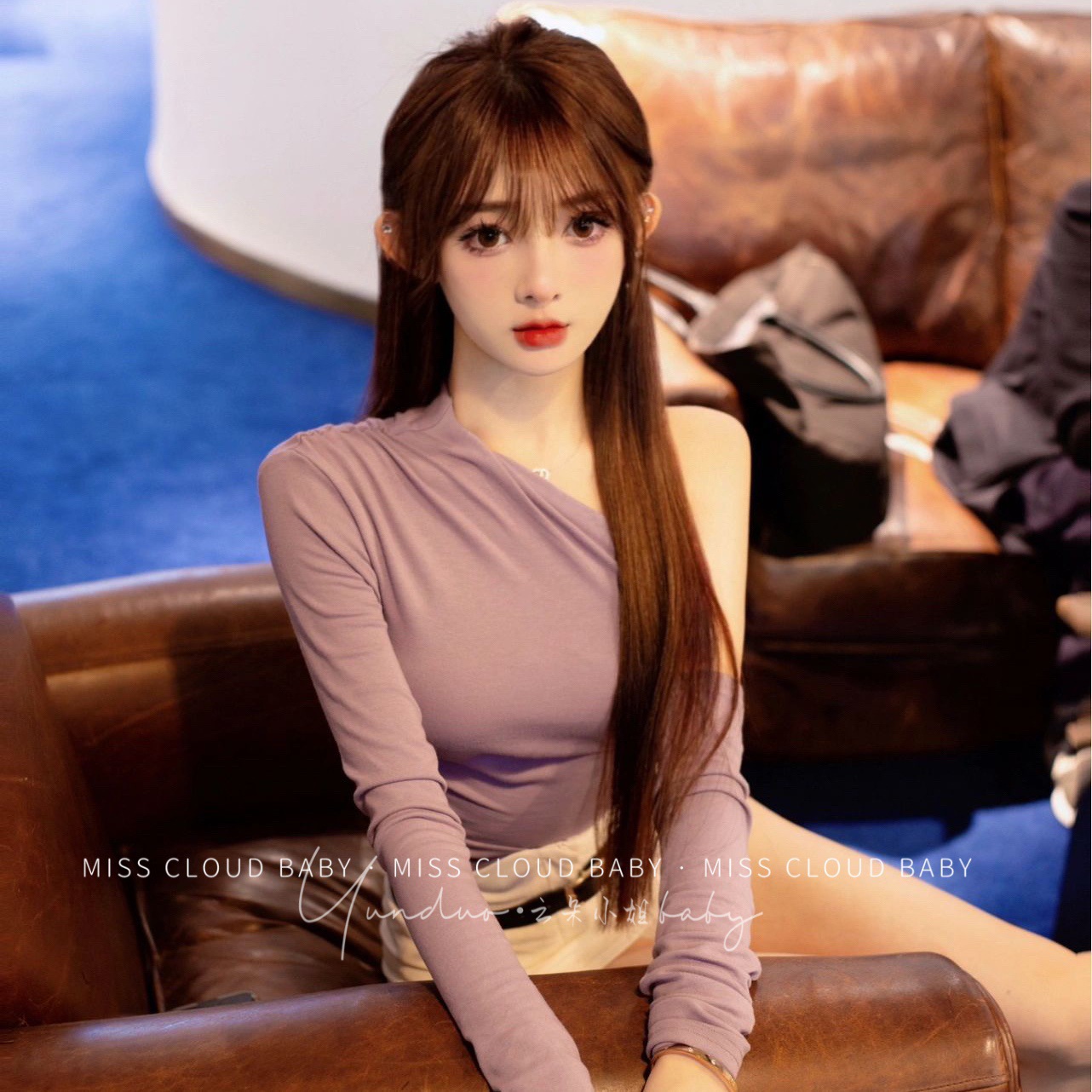 小さくて美しいセクシーな純粋な欲望 2024 セクシーなオフショルダートップとボトリングシャツ女性のための新しいハイエンド春紫シック