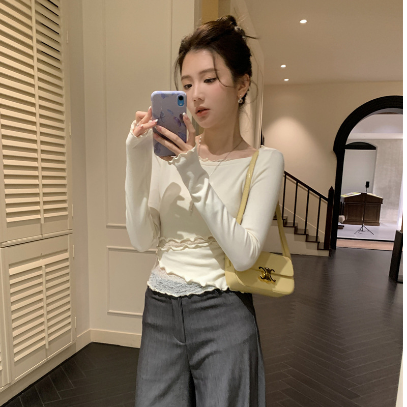 セクシーな長袖Tシャツトップスレディースボトリングシャツホットガールニッチインナーレース純粋な欲望ドーパミン秋不規則