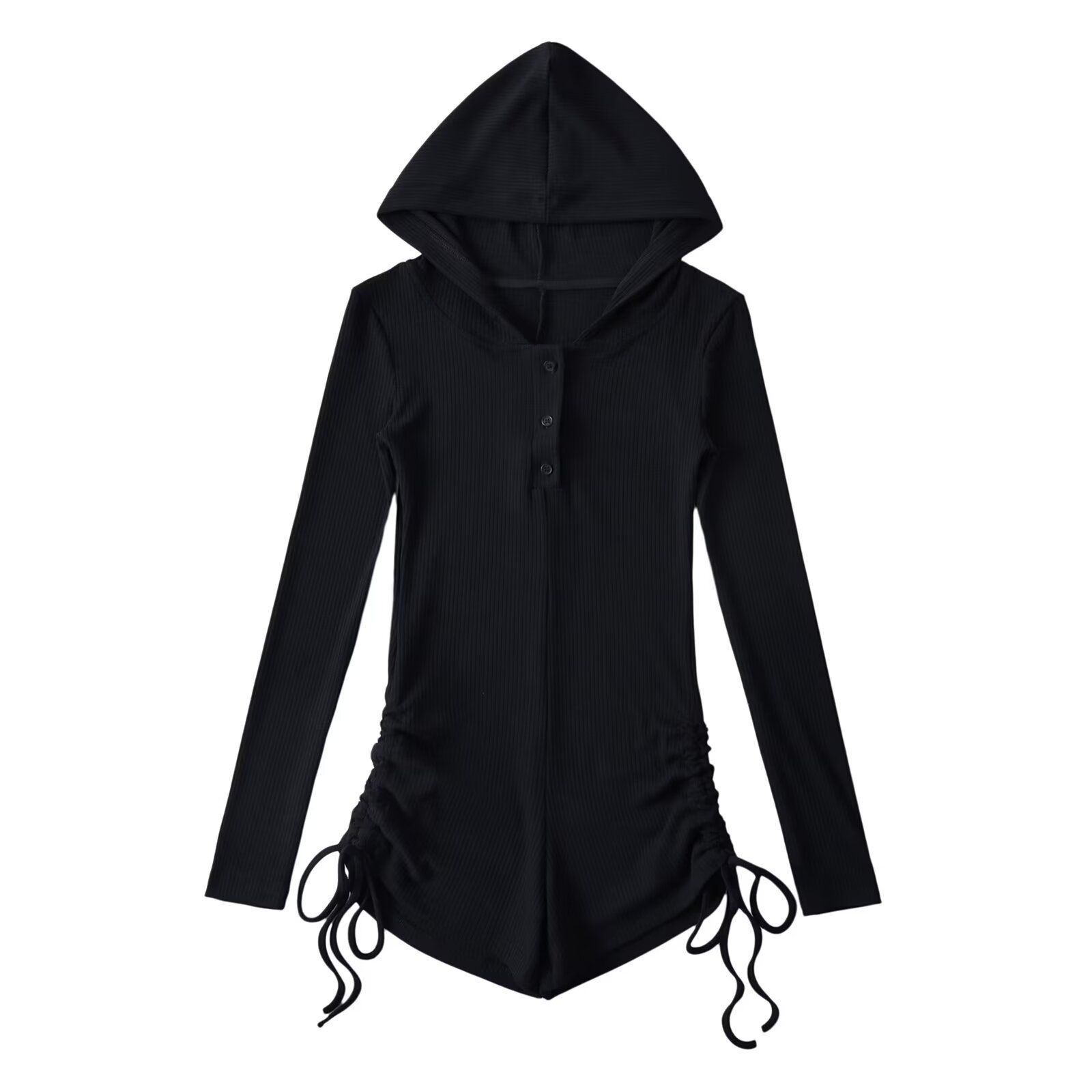 アメリカンフード付きカジュアルジャンプスーツ、女性用ジャンプスーツ、ハイウエストフィットネスウェア、ホットガールアウターウェア、ヨガ長袖Tシャツ、痩身