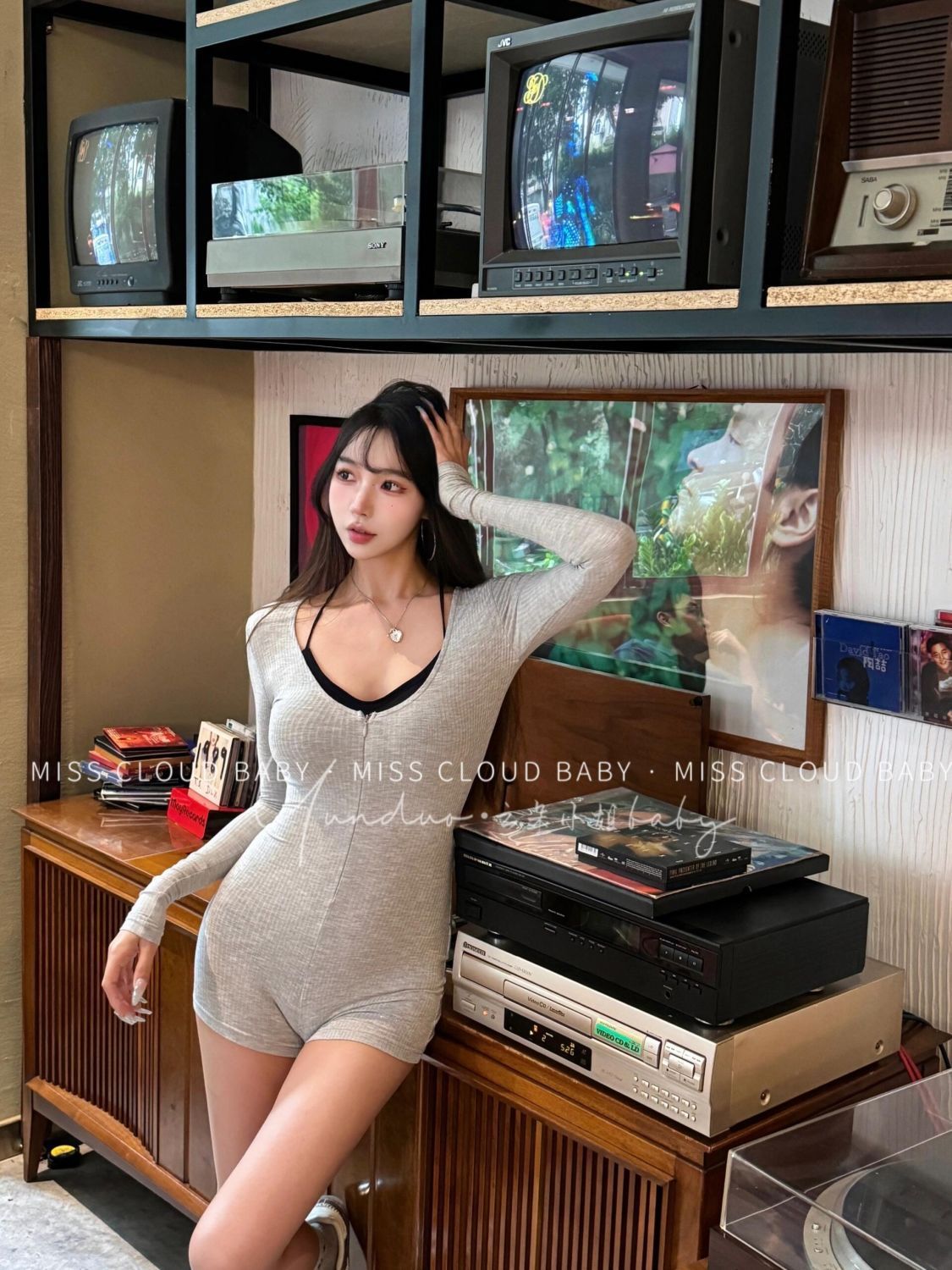 セクシーな純粋なデザインのホットガール Tシャツジャンプスーツセクシーなヨーロッパとアメリカのワンピースショーツ女性のホット長袖カジュアルスポーツウェア