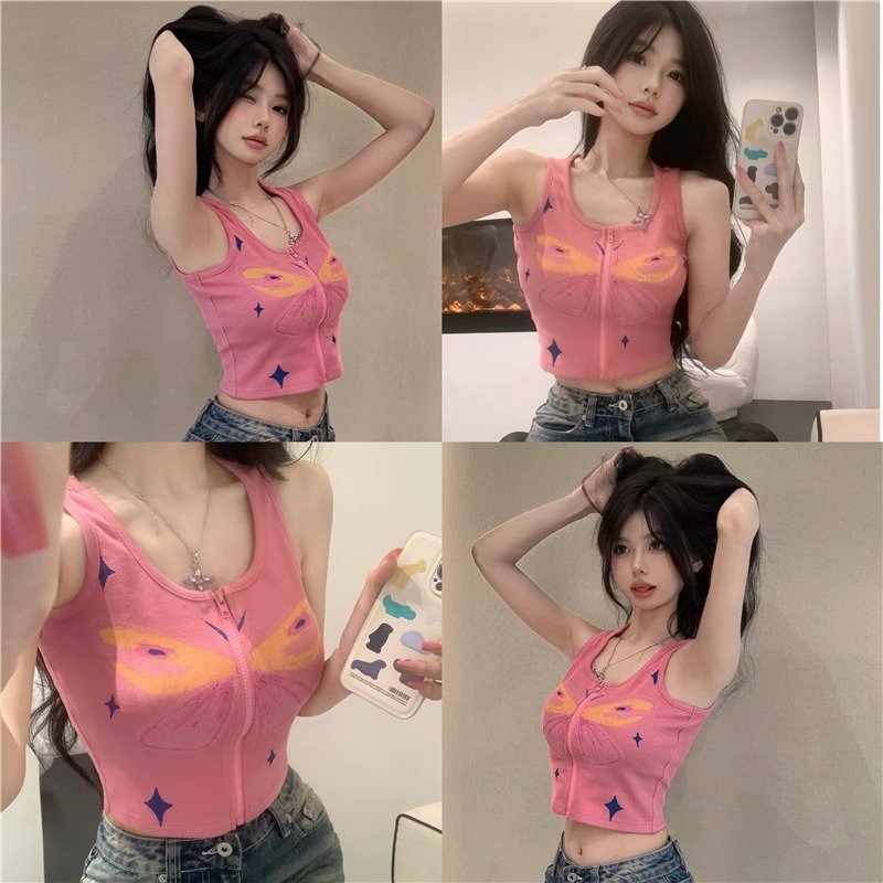 プリントトップスタースプリングサマーチューブトップストリートスタイルピュアアメリカンスタイルホットガールスリムセクシーニッチをデザインしたい