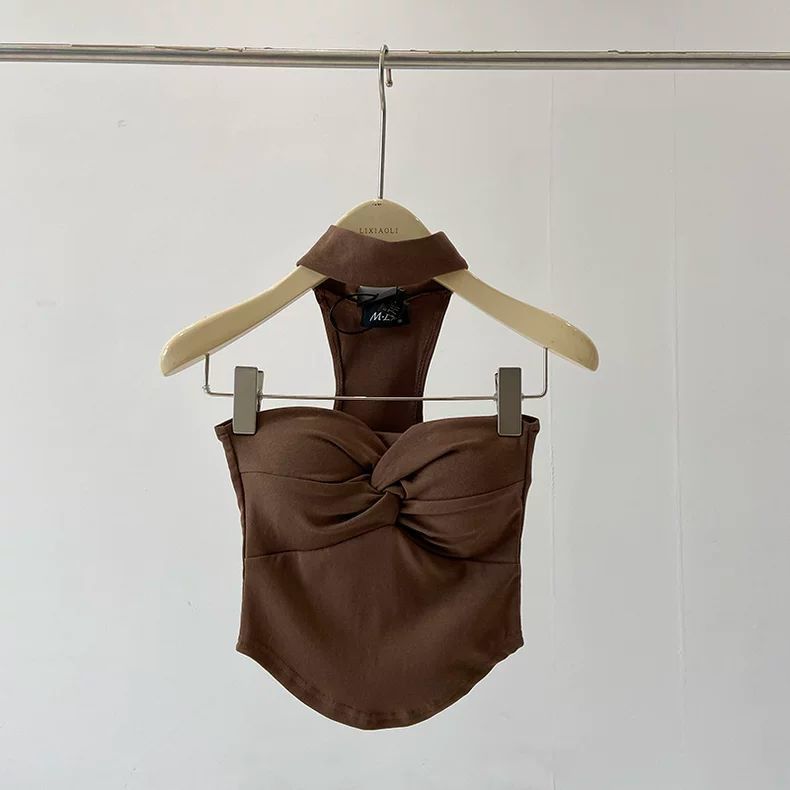 胸パッド付き美しいバックトップ、美しい純粋な欲望スタイルのホットガールノットホルターネック、女性が外で着用できる多用途の小さなキャミソール