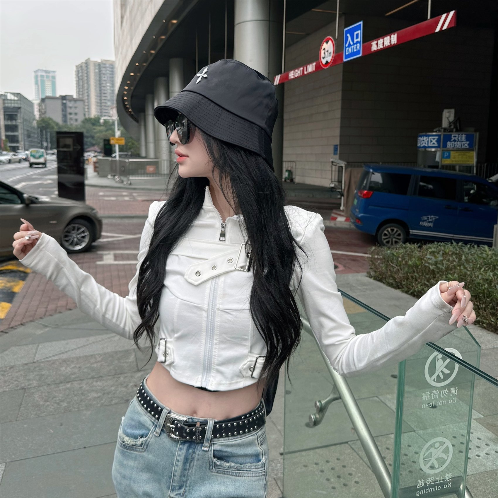 高さは古い外着の季節が開いていて、やせている上着のストラップのベストの女性の夏のしわの街頭の2025の中で穴を割って復古します。