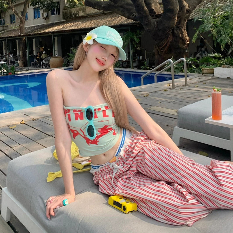 ノースリーブトップドーパミンスリムイエローアメリカンスリムスター春夏ホットガールプリントチューブトップベスト