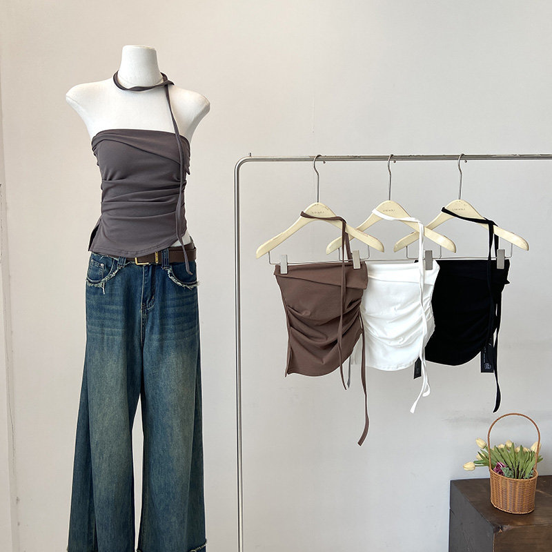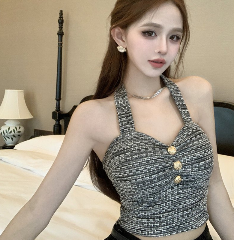 春夏のショートシャツトップス、新しいレトロファッションホルターネックキャミソール、女性用アメリカンスタイルインナー、小香風