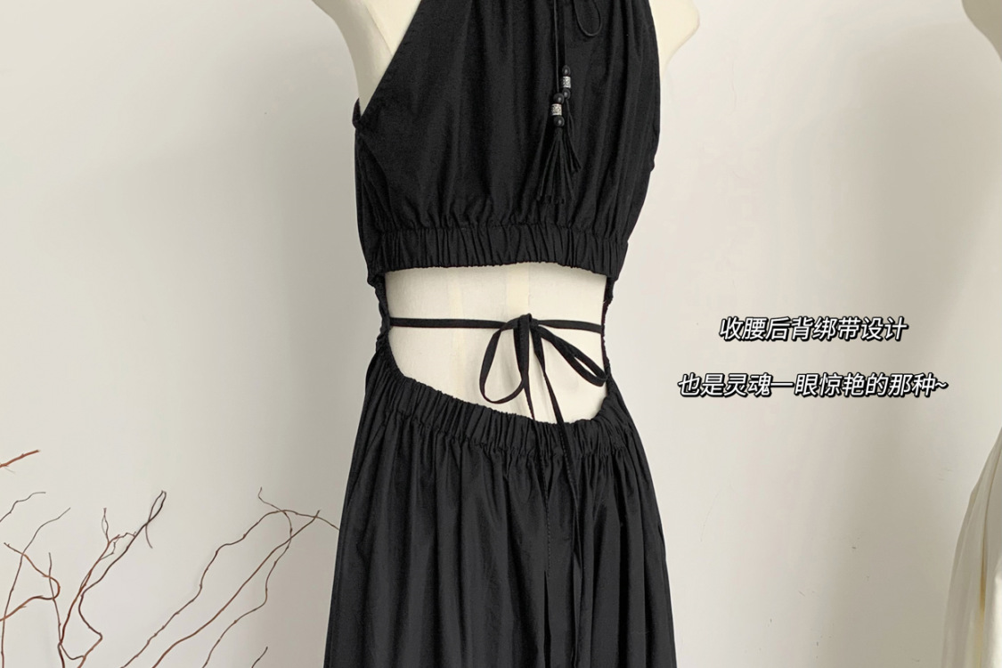 シックなデザインのタッセルウエスト露出ハイグレードホルターネック春夏気質フレンチドレス甘い女性のニッチスカート