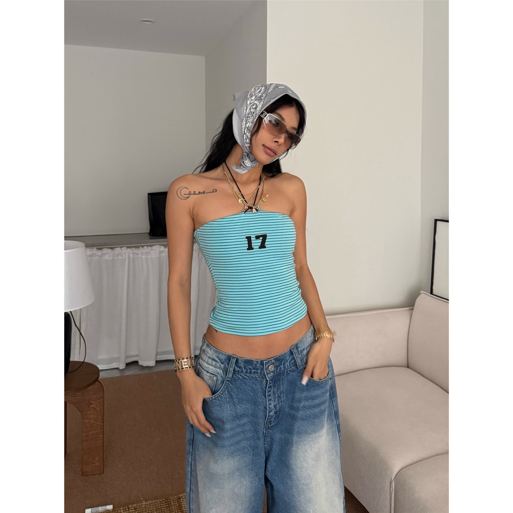 スリムフィット、ピュアセクシースタイル、ユニークなホルターネック、夏のセクシーなストライプのチューブトップ、ホットガール、アメリカンスタイルのコントラストカラー、スリムなデザイン