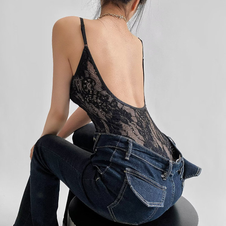 インナーは気質クロッチレスセクシートップス新作春夏レディース高級バックレスレースキャミソール