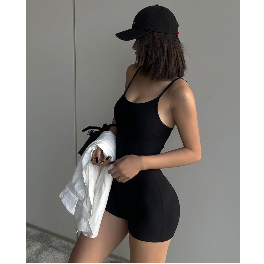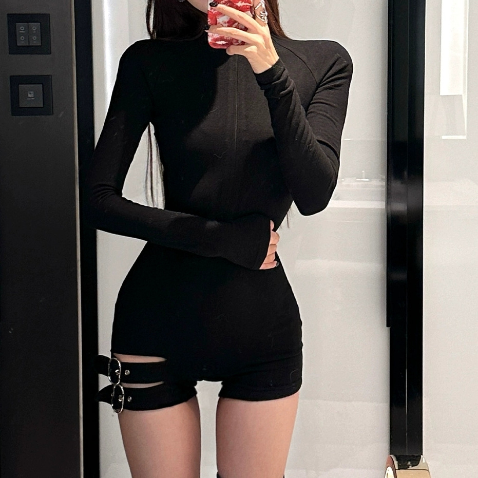 百合大連体港味上着女性連体服修身露背港味半袖潮流高腰欧米風tシャツ