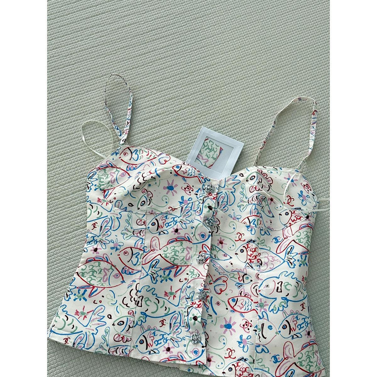 2025 ニッチキャミソール女性のトップス新しい子供のような香り年齢を軽減する小魚デザイン落書き夏遊び心