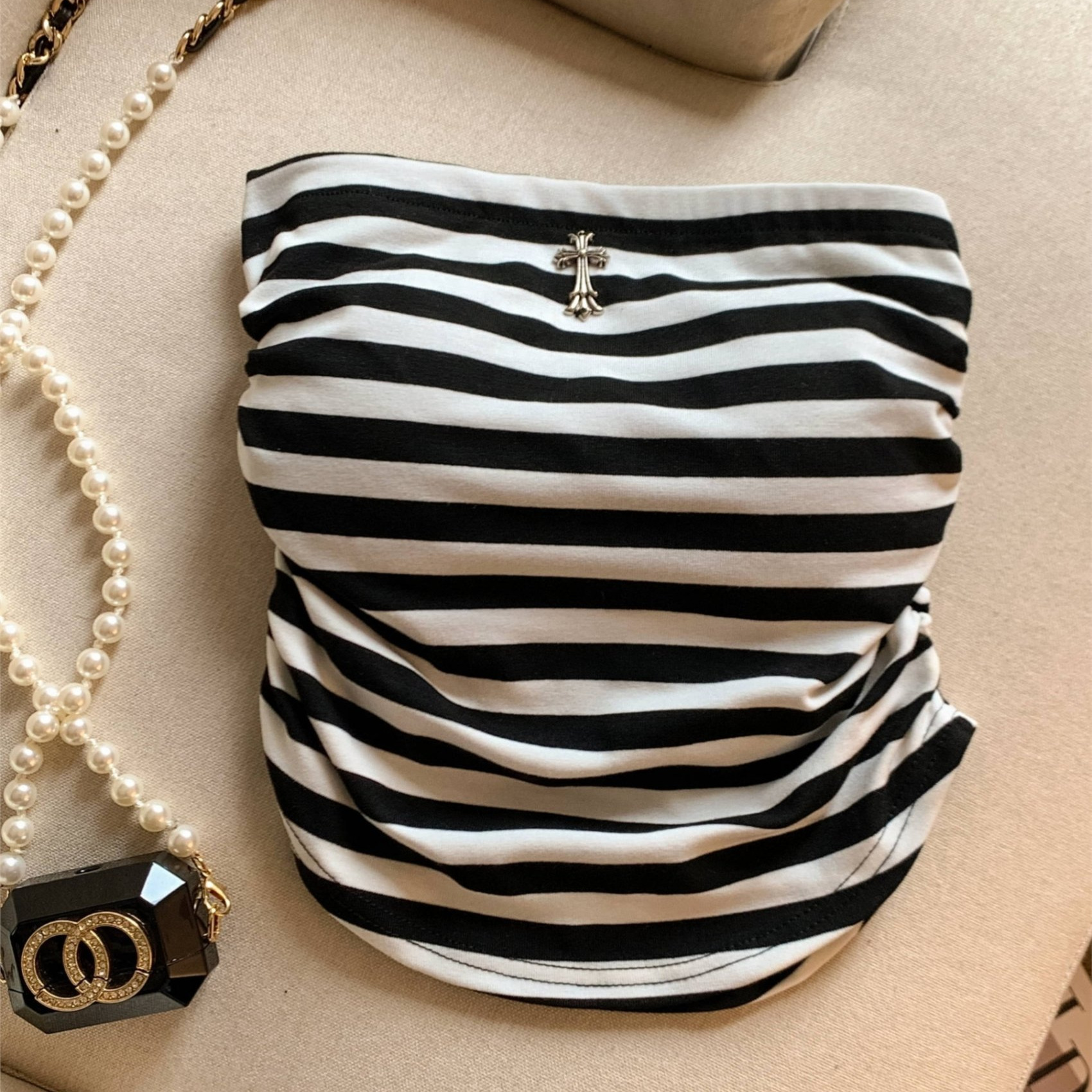 コントラストカラーの新しい甘いチューブトップストライプオールインワンは外でも着用可能ホットガールノースリーブトップ春と夏の純粋な欲望スタイル胸ラップ